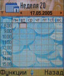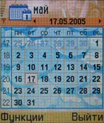 Календарь. Органайзер со стандартными для Series 60 возможностями. Есть ежемесячный и еженедельный режимы отображения, возможности программирования напоминаний относительно скромные.