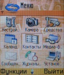 Соответственно, приемы управления, структура меню и возможности основных апплетов стандартны для Nokia Series 60. Главное меню двухмерное, пиктографическое, второй вариант представления (в виде полос с вертикальной прокруткой) сохранился в определенных местах, но в качестве способа отображения главного меню его выбрать нельзя. Главное меню вызывается при помощи выделенной клавиши.