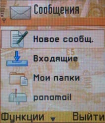 Сообщения. Программа для работы с сообщениями, также стандартная для Series 60. Поддерживаются SMS, MMS и e-mail.