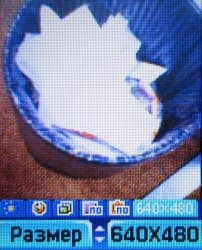 Из настроек, доступных прямо в режиме съемки, есть возможность выбора яркости (обычная, день или ночь), таймер (на 3, 5 или 7 секунд), количество фото в серии, один из нескольких фотоэффектов (рельеф, негатив, сепия или черно-белый кадр), и, наконец, размер фотографии — 640×480, 352×288 или 128×128.
