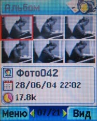 В это же меню помещаются все полученные изображения и мелодии, потом их можно сортировать и назначать, например, в качестве входящего звонка. Здесь есть пункт WAP, дублирующий центральную кнопку на клавиатуре, Камера (тоже клон), и диктофон. Длина каждого сообщения здесь не может превышать 30 секунд, общая память распределяется динамически — в зависимости от того, что еще вы загрузили в телефон. Ресурс — 1,8 МБ, что вполне прилично.