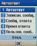 Игры и инструменты. В этом пункте находятся подменю доступа к фотокамере, галереям изображений и видеофрагментов, играм и Java приложениям, диктофону. Отдельного упоминания заслуживает пункт Автоответ.
