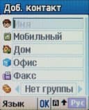 Контакты. Для каждого контакта в телефоне можно ввести следующие поля — имя, мобильный, домашний и рабочий телефоны, номер факса. Можно поместить контакт в определенную группу (5 групп, названия не редактируются), присвоить фотографию, отдельную мелодию. Можно записать адрес электронной почты и заметку. Нужно только помнить, что емкость книги составляет не 800 контактов, а 800 номеров.