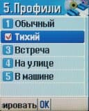 В режиме ожидания при нажатии джойстика вверх мы попадем в меню выбора профиля звонка, вниз — в список записей телефонной книги, влево — в меню Избранное, вправо — в окно создания нового SMS-сообщения.