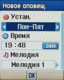 Органайзер. Будильник можно установить на однократное, ежедневное срабатывание или срабатывание только по рабочим дням (пон-пят или пон-суб). Всего в списке можно задать до пяти различных будильников.