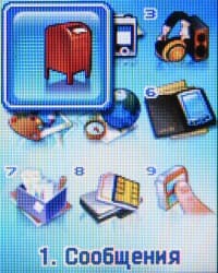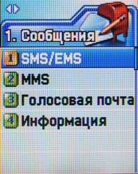 Меню Сообщения открывает доступ к SMS, MMS, голосовой почте и сообщениям Cell Broadcast.