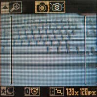Включить фотокамеру можно, нажав специальную клавишу в блоке функциональных кнопок, или же через меню Мультимедиа. Видоискателем служит, естественно, дисплей, вверху и внизу экрана отведено место для специальных символов. Чтобы сделать снимок, необходимо еще раз нажать на клавишу со значком камеры, что не очень удобно — инстинктивно хочется нажать на джойстик, что эквивалентно команде ОК. Однако воздействие на последний просто открывает доступ к настройкам камеры. Их не очень много, поэтому перечислим все. Прежде всего, это возможность выбрать режим цветности съемки — цветная, черно-белая, в голубых тонах или сепия. Далее следуют настройки звука затвора, выбор разрешения снимков (640×480, 320×240, 160×120 или 128×128), установка качества картинки (низкое, среднее или высокое) и включение таймера. Последний можно активировать прямо из режима фотосъемки, нажав на 0. Кстати, нажатие на «решетку» изменяет разрешение снимков, а звездочка включает или выключает ночную съемку.