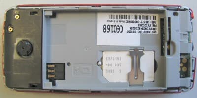 Продолжаем осматривать телефон. На задней панели появился объектив встроенной фотокамеры — главного новшества данной модели. VGA-камера позволяет делать снимки со стандартным разрешением 640×480 точек. Под объективом расположено небольшое зеркальце — чтобы было проще делать автопортрет. Честно говоря, ничего особенного из себя камера не представляет. Однако подробнее мы на ней остановимся чуть позже.