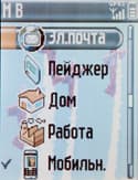Сообщения — меню для работы с сообщениями смс и ммс, а также электронной почтой. Настраивать пришлось только установки ммс-профиля, как уже говорилось ранее, они не введены в трубку. Аппарат имеет встроенную систему облегчения набора слов — Т9, правда, некоторые буквы на экране отображаются не корректно: например заглавная Н отображается как латинская N, хотя при простом побуквенном наборе такого нет.