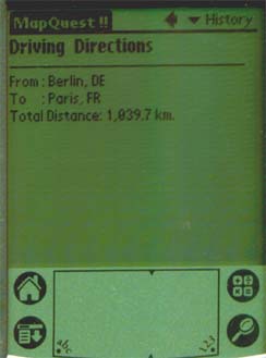 MapQuest — приложение с помощью которого можно определить расстояние от одной точки в США или Европе до другой. Также, доступна информация о пробках на дорогах в США. К сожалению, система не знает, что существует Москва. А вот расстояние от Берлина до Парижа было рассчитано моментально.