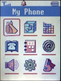Главное меню представлено в виде набора иконок; все пункты и подпункты пронумерованы, что позволяет использовать быструю навигацию с помощью цифровых последовательностей. Изюминка меню состоит в том, что для любого пункта главного меню стандартную иконку можно заменить какой-либо другой, представленной в аппарате. Более того, иконки можно загрузить с компьютера. Некоторые операторы даже поддерживают получение набора иконок, но, увы, не у нас в стране. Вторая особенность интерфейса SCH-X130 состоит в наличии в главном меню иконок ящичков со знаком вопроса. С их помощью разработчики дали возможность пользователям самим выбрать любой из подпунктов меню и вынести их сюда, на верхний уровень; более того, вы вольны настроить иконку по своему вкусу. И на этом сюрпризы не заканчиваются: пользователь самостоятельно определяет порядок следования пунктов в меню — это, согласитесь, подкупает. Из второстепенных функций, связанных с работой меню, отметим также возможность выбора окантовки всплывающих экранов (всего 4 варианта) — казалось бы, мелочь, а приятная.