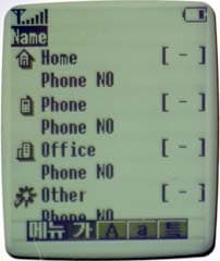 Телефонная книга почти идеальна. Для каждого имени можно записать до 5 номеров телефонов, адрес электронной почты, текстовую памятку, а также выбрать персональную мелодию звонка. Ввод имен, конечно же, на корейском или английском, поддержки русского языка нет. Объем памяти рассчитан на 2400 записей, распределяется она динамически: так, внося лишь один номер для каждого имени, вы получите 2400 записей, что совсем неплохо. Предусмотрены различные варианты сортировки имен и абонентские группы; выбрав имя, можно перемещаться между записанными на него номерами. Общий список вызовов состоит из 34 записей, есть возможность просмотреть отдельные списки.