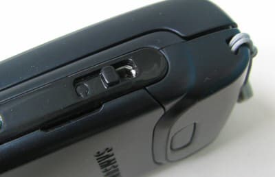 Кроме основной клавиатуры D500 оборудуется качающимся регулятором громкости на левой грани — выпуклым, а потому очень удобным, а также кнопкой Фото на правой грани. Помимо этого на боковых гранях корпуса располагаются окно ИК-порта (слева), информационный разъем (снизу) и разъем для подключения гарнитуры с новым плоским штекером (справа). Разъем закрывается сдвижной пластиковой шторкой, расположенной с внутренней стороны корпуса. Samsung экспериментирует с конструкцией этого элемента и каждый раз изобретает все лучшие решения.