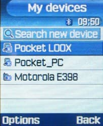 Наконец, в меню Settings можно установить дату и время, настройки телефона, дисплея, звуковых сигналов, сетевых сервисов и передачи данных. Наиболее интересен, конечно, последний, так как здесь осуществляется управление Bluetooth. С помощью этого интерфейса можно не только подключать телефон к ПК или беспроводной гарнитуре hands-free, но и непосредственно принимать и передавать файлы между D500 и любыми устройствами, поддерживающими OBEX. Если установлено соединение, телефон может просматривать структуру папок на целевом устройстве, открытых для общего доступа, и загружать оттуда файлы доступных для воспроизведения форматов. Для передачи информации можно воспользоваться опцией Send via Bluetooth, которая появляется в контекстном меню при просмотре файлов в фото- видео- или звуковом браузере телефона. Подключение Samsung D500 к КПК Fujitsu-Siemens Pocket LOOX 720 прошло без проблем, управление передачей/приемом файлов с телефона не вызвало затруднений, а вот при попытке просмотреть файловую систему телефона с КПК произошла самопроизвольная перезагрузка телефона. Надеемся, что эта проблема вызвана недоработкой в инженерной версии ПО.