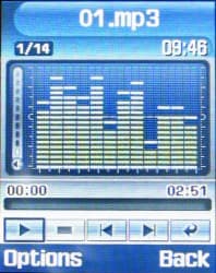 MP3 Player — программный проигрыватель музыкальных файлов в формате MP3. Телефон позволяет воспроизводить музыку в формате MP3 и MP3Pro с постоянным (в том числе и максимальным — 320 kbps) и переменным битрейтом. Из имеющихся в памяти файлов можно формировать плейлист с заданным порядком проигрывания композиций, который, однако, нельзя сохранять, импортировать или экспортировать. Музыку можно прослушивать как на динамике телефона, так и с помощью стереогарнитуры.