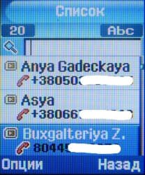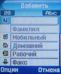 Телефон оборудован расширенной адресной книгой, рассчитанной на хранение 1000 записей. Каждая из них подписывается именем и фамилией абонента (которые заносятся раздельно в два разных поля), и содержит 3 номера телефона (мобильный, домашний, рабочий), номер факса, еще один номер (поле Etc), адрес e-mail, индивидуальную мелодию звонка, картинку, выводимую на экран при входящем вызове, принадлежность к группе и текстовое примечание (сюда можно внести, например, почтовый адрес). Записи из памяти телефона и SIM-карты выводятся в едином списке. Есть также несколько дополнительных приятных мелочей, среди которых — выбор действия по умолчанию при сохранении нового контакта. Из контекстного меню контакта можно сразу совершить голосовой звонок по выделенному номеру, отправить SMS или MMS, а также передать контакт через ИК-порт, Bluetooth, либо в составе сообщения SMS, MMS или e-mail.