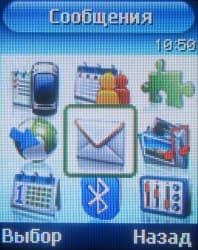 Меню Сообщения содержит команды для работы с сообщениями и настройки их параметров. Телефон поддерживает SMS и MMS, а поддержка e-mail в этот раз отсутствует.