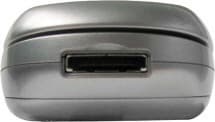 Качающаяся клавиша на левой грани, управляющая громкостью, традиционно сделана выпуклой и очень удобной. Помимо нее на корпусе находится только гнездо гарнитуры hands-free традиционного типа, закрытое пластиковой заглушкой на капроновой оси — эта система заменила традиционную резиновую заглушку и кажется намного более долговечной. В нижнем торце базового блока располагается гнездо для зарядного устройства и дата кабеля с «узким» типом штекера.