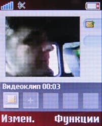 Телефон позволяет снимать видеоклипы с разрешением 176×144 или 128×96 точек, которые могут быть как неограниченными по длительности, так и оптимизированными для передачи по MMS. При видеосъемке работает макрорежим, ночной режим, подсветка, те же художественные фильтры, что и при фотосъемке, установка баланса белого. Снимает телефон вполне прилично, обеспечивая достаточную плавность движения в кадре и частоту смены кадров.