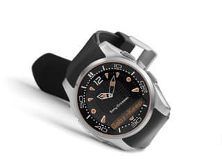 Часы выполнены в массивном стальном корпусе, размеры которого можно назвать довольно лаконично: большие. Толщина часов, равная 15 мм, также соответствует 46 мм в ширину и 51 мм в высоту. В нижнюю область вписан небольшой инверсионный дисплей, разрешением 88×14 пикселей. Учитывая узкий круг задач, выполняемых экраном, использование такого сдержанного решения более чем оправданно. Управляющие элементы корпуса представлены кнопками плеера слева, а также управляющими клавишами с правой стороны, расположившимися по бокам от колёсика настройки стрелок. В силу кварцевого механизма стрелок, колёсико спокойно крутится в обе стороны в зафиксированном положении.