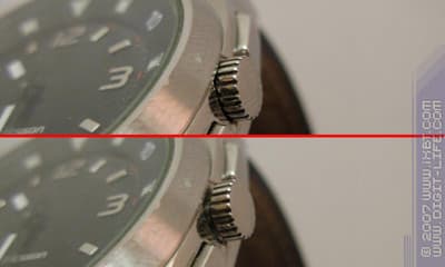 Не меньший интерес вызывает ремешок часов, выполненный из сочетания чёрной кожи со светло-коричневым нобуком. Наиболее интересным моментом является тот факт, что крепёжная область ремешка выполнена с пластиковым каркасом, заметно повышающим надёжность крепления 23,5 мм пружинами.