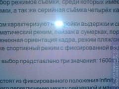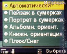 Условия съёмки во многом характеризуют настройки выдержки и светочувствительности. На выбор доступен автоматический режим, пейзаж в сумерках, портрет в сумерках со вспышкой, альбомная и книжная ориентация кадра, режим пляж/снег с минимальным уровнем ISO 100, а также спортивный режим с фиксированной выдержкой 1/30с.