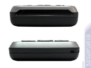 Боковые органы управления представлены клавишей включения/выключения, на верхнем торце, органично вписанной в широкое стёклышко ИК-порта. Нижний торец девственно чист, за исключением отверстия для ремешка в левом нижнем углу корпуса.