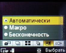 Настройки автофокуса состоят из фиксированного положения Infinity, Macro, а также режима автоматического переключение между пейзажной и макросъёмкой, в зависимости от расстояния до объекта.