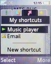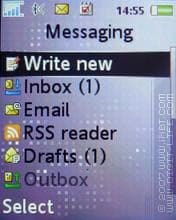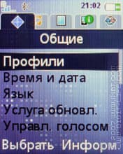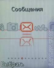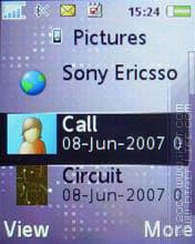 Для входа в главное меню, необходимо нажать на центральную навигационную клавишу или воспользоваться правой софт-клавишей. Главное меню из 12 пунктов может быть представлено матрицей 3×4 или списком, в зависимости от выбранной темы. Присутствует цифровая навигация по всем пунктам. Подменю представлены в виде вертикальных списков, снабжённых, в большинстве случаев, горизонтальными закладками, позволившими оперативно перемещаться по различным типам сортировки пунктов.