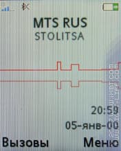 В режиме ожидания на экране присутствует верхняя строка индикаторов уровня приёма сигнала, активности GPRS, наличия непринятых вызовов или непрочитанных сообщений, Bluetooth, а также индикатором уровня заряда батареи.