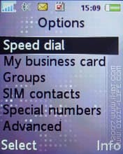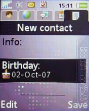 Память телефонной книги рассчитана на 2500 номеров, которые можно соотнести не более чем с 1000 контактов. Также, каждому контакту можно задать имя, мобильный, домашний, рабочий номера телефонов, а также загадочный «другой» номер. Далее, по списку идёт номер факса, e-mail, домашняя web-страница, картинка, отображаемая на половину экрана при входящем вызове, индивидуальная мелодия вызова, голосовая метка, рабочий и домашний адреса, заметка, длинной в 51 символ, а также напоминание о дне рождения.