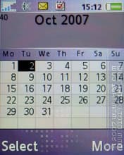 Чуть ниже строки пиктограмм отображается название оператора, под которым также присутствует подпись БС. Далее, на усмотрение владельца, можно включить отображение цифровых часов, как на треть экрана, так и в виде небольшой надписи, схожей по размеру с индикатором текущей даты, расположенным справа. Напротив даты остаётся пустое место, которое может занимать, например, счётчик таймера. Нижняя часть занята строкой подписей к софтклавишам, переназначить которые, в силу особенностей управления, нельзя.
