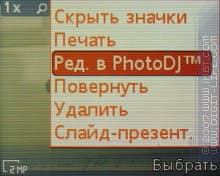 Во время просмотра файлов, можно оперативно вызвать фото/видео редактор, позволяющий изменять яркость/контраст, цветовые эффекты, накладывать аппликации или рамки, а также вырезать необходимый участок снимка. Правда, для вырезания нужного участка кадра достаточно воспользоваться обычным альбомным просмотром, где качелька регулировки громкости позволяет масштабировать картинку от 1х до 2 с шагом 0,2х, 0,5х, а в дальнейшем, с шагом 1х, вплоть до 32х. Говорить о наличии символического просмотра фотографий в режиме слайд-шоу как-то неуместно — это обычное автоматическое переключение фотографий каждые три секунды.