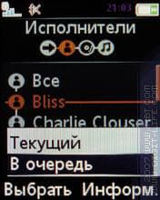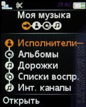 В главном меню библиотеки присутствует сортировка по исполнителям, альбомам, спискам воспроизведения, потоковым каналам, а также отображение всех песен единым списком. Что удобно, при наведении на каждый из пунктов, в строке заголовка отображается максимально возможная цепочка выборки. Для перемещения по меню можно использовать как классическую комбинацию клавиши OK и возврата, так и более эргономичные горизонтальные отклонения навигационной клавиши. Во время проигрывания музыки можно оперативно добавить выделенные треки к текущему списку воспроизведения.