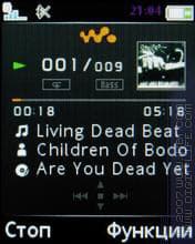 - выделенная клавиша запуска вызывает окно воспроизведение плеера, что также возможно из главного меню телефона.