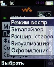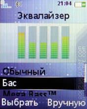 Среди настроек звучания традиционно присутствует пятипозиционный эквалайзер, позволяющий добиться хорошего звучания, если установить все полосы в ручной настройке на минимум. Набор предустановок состоит из линейного значения, усиления нижних частот с выделением верхнего спектра, Mega bass, отличающийся от предыдущей линейным значением среднего и верхнего частотного спектра, а также установки завышения двух правых полос. Также имеется возможность включения усиления стереоэффекта, заглушающего монофонический поток.