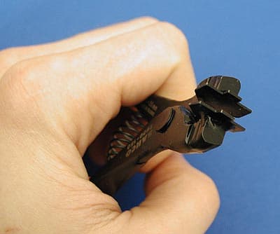 На первый взгляд кажется, что самый простой способ разборки - просто потянуть в разные стороны ручки инструмента. Однако от подобных действий стоит воздержаться: слишком велик риск того, что инструмент перекосится в углублении, и тогда на корпусе аппарата неминуемо останутся заметные вмятины. Самым безопасным способом является следующий: жестко удерживая одной рукой инструмент от перекоса в пазе, другой рукой вставить в щель между губками инструмента плоскую отвертку и, надавливая ее рабочей поверхностью, как клином развести губки инструмента в стороны.