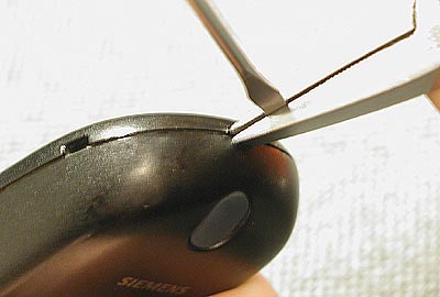 Дело в том, что разборка по стандарту производителя требует использования специального инструмента. А во время написания первой части статьи я еще не работал в сервисном центре по ремонту сотовых телефонов и не имел возможности ознакомиться подробно с методикой их разборки. А разработанный мною способ безоговорочно подходил только для корпусов моделей серии S — у моделей серий С и М после разборки на поверхности часто оставались заусеницы, да и сам процесс бывал затруднен из-за достаточно жестких защелок корпуса. Нередко даже аккуратные действия могли повлечь за собой порчу внешнего вида аппарата.