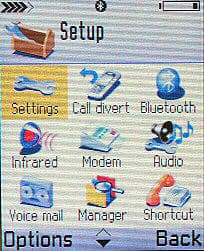 | Setup | Settings, Call divert, Bluetooth, Infrared, Modem, Audio, Voice mail, Manager, Shortcut, About | To-do | - |