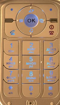 Позиционная клавиша наделена дополнительными функциями в режиме ожидания. Влево — работа с сообщеними, вправо — выбор звукового профиля, вниз — развлечения (в том числе MP3-плеер), вверх — доступ к WAP браузеру.