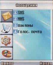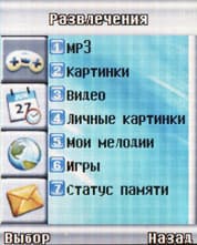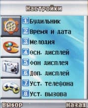 Меню представлен в виде списка из 9 пунктов, по которому перемещаешься навигационной клавишей.
