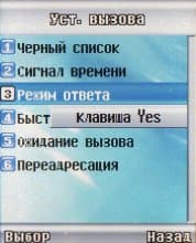 Настройки. В этом пункте собраны все настройки аппарата: управление обоими дисплеями, режим ответа на звонок. Причём ответить на звонок открытием крышки нельзя, нкжно выбрать или нажимать на любую клавишу, или на клавишу ответа.