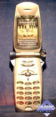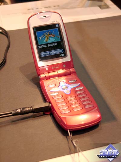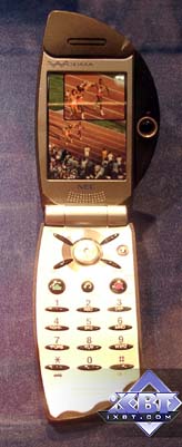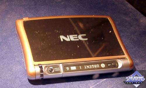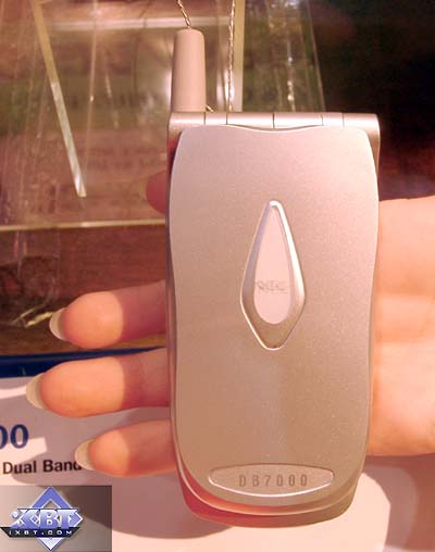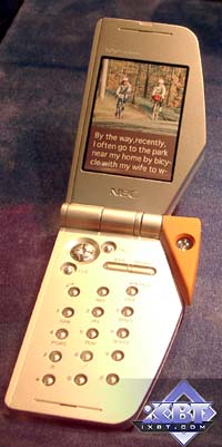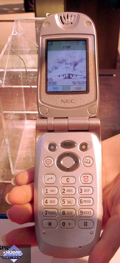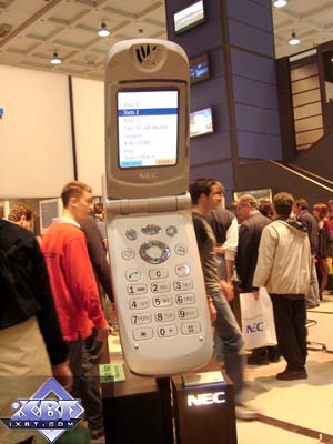 Из мобильных телефонов для сетей GSM была показана модель Nec DB7000, в виде муляжа продемонстрированная на CEBIT. Сейчас это уже вполне рабочий аппарат, о его функциях прочитать можно здесь, от себя же замечу, что это один из самых больших аппаратов-раскладушек, но это как раз понятно: у него множество функций, да и экран немаленький. Продажи DB7000 в Европе начнутся уже со второй половины ноября, цена в розничной сети составит около 500-550 долларов.