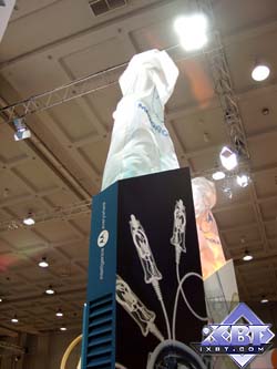 NEC. http://www.nec.co.jp Стенд этой компании был одним из наиболее интересных: на нем демонстрировались образцы устройств для сетей третьего поколения. Некоторые из них вы можете увидеть на фотографиях. Около стенда стоял большой макет телефона со сменяющимися на экране картинками — чтобы сфотографировать его, пришлось долго ловить нужный момент.