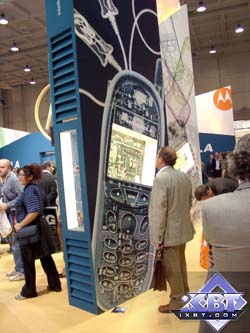 Motorola. http://www.motorola.com Стенд компании Motorola окружали изображения телефонов с витриной вместо экрана, на которой во всех цветовых решениях была представлена одна из моделей Motorola со всеми аксессуарами. Сверху развивались флажки с символикой компании.