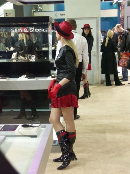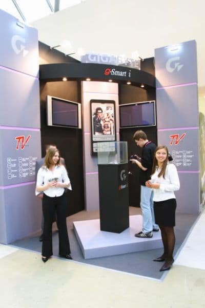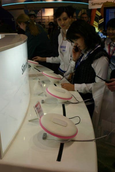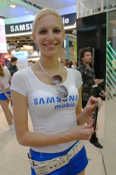 Самый большой стенд (хотя специальных замеров мы не проводили) был у Samsung, что и не удивительно, учитывая количество и разнообразие моделей: как средств связи, так и девушек, их представлявших.