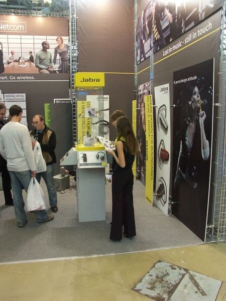 Тут же примостился стенд GN Netcom и Jabra. Были представлены различные виды гарнитур, как проводных так и безпроводных. Из последних можно отметить модели JX-10 и стреoгарнитуру BT620s.