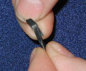 В качестве материала для пластины подходят выломанные из корпуса компьютера металлические заглушки от установочных гнезд под 5,25″ и 3,5″ устройства или брэкеты — заглушки от отверстий, неиспользованных для установки периферийных устройств в материнскую плату. Такой металл достаточно легко режется и гнется, и кроме того анодированное покрытие делает легким процесс залуживания только требуемой части заготовки. Резать его лучше малыми ножницами по металлу, хотя пробовали и обычными техническими ножницами.
