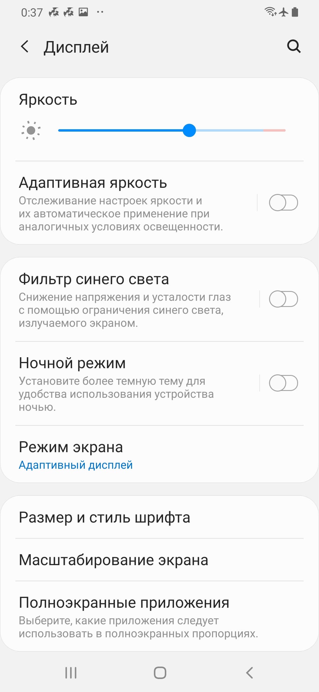 Фотография выше получена после выбора профиля Основной в настройках экрана, всего их четыре: