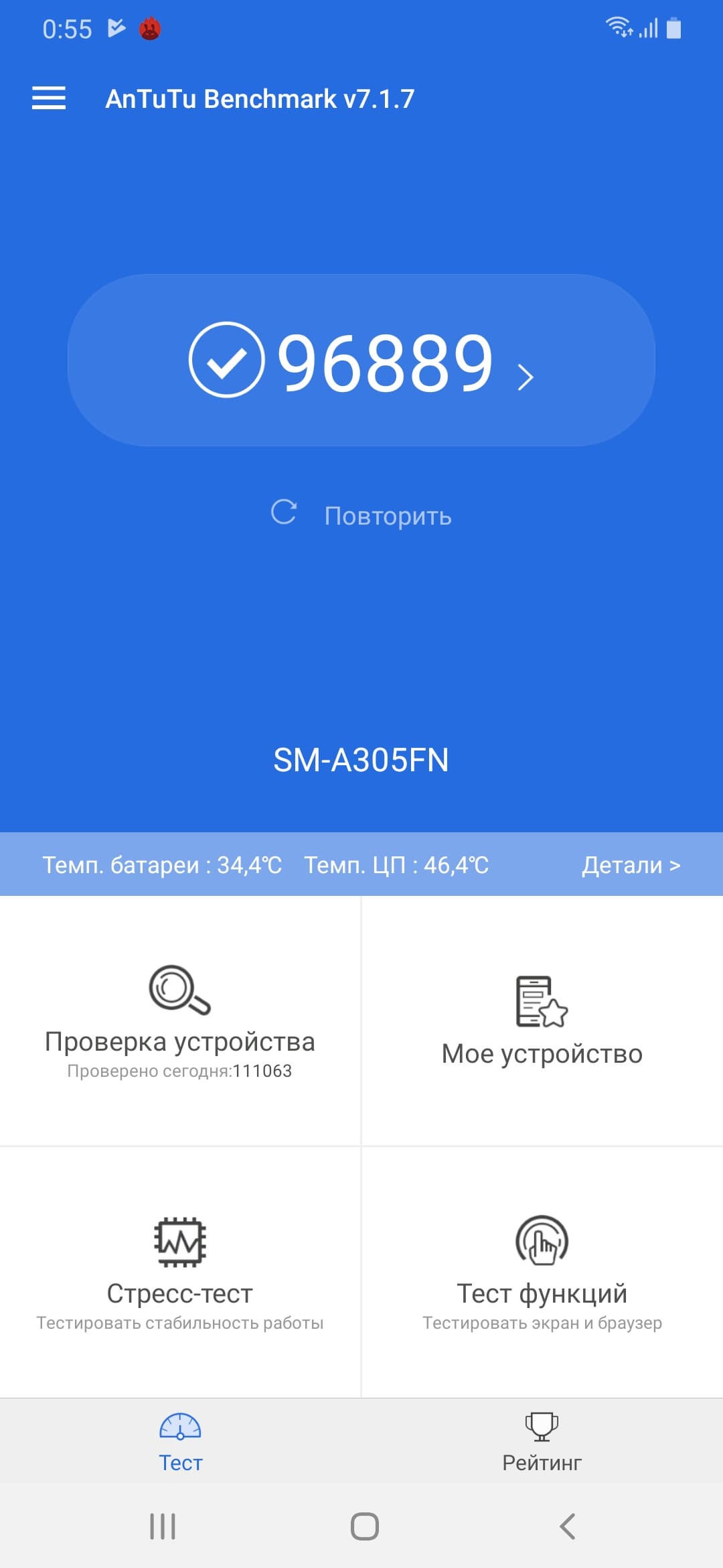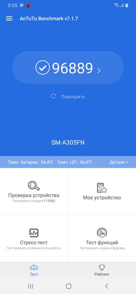 Еще больше удручает тот факт, что наш герой не только уступает бодрому и даже шустрому Galaxy A50 в плавности работы интерфейса и приложений, но и откровенно притормаживает. Честно говоря, уж тормозов в работе современного смартфона от Samsung никак не ожидалось.
